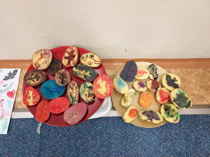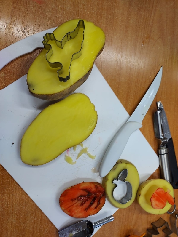 Na Bramborový den se sešlo tolik nápadů, že se zkrátka do jednoho dne nevešly. Začali jsme výtvarnou výchovou na začátku týdne. Bramborová tiskátka jsou klasika a děti neskutečně bavila. Včetně pomalování celých ručiček, ale to k tomu zkrátka patří. Když tiskat….tak vším, co jde😊 .