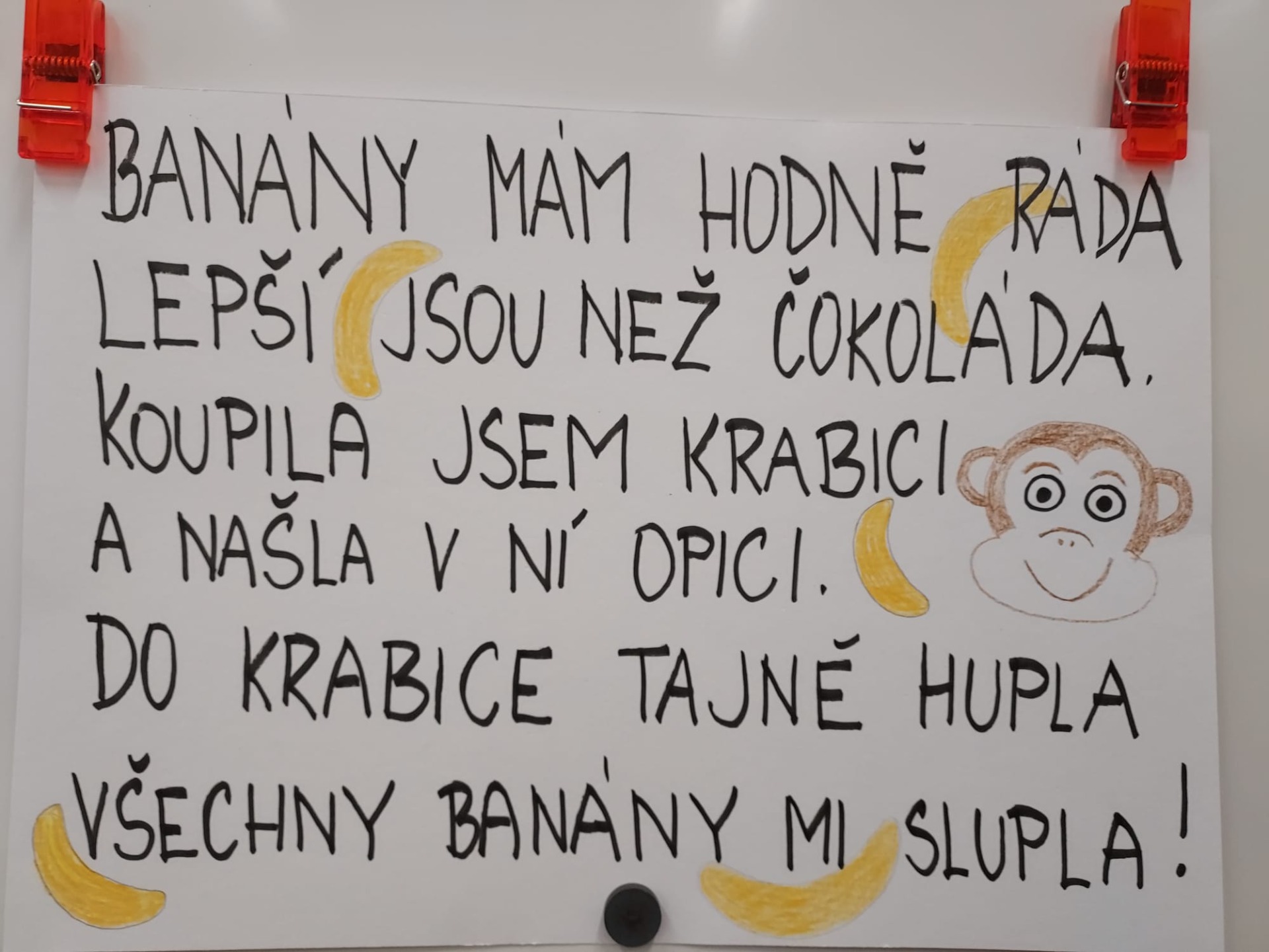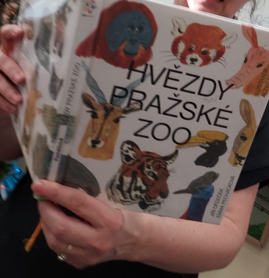 V klidnější části dne jsme si pustili krátká videa o životě opic, trochu prvouky , ochrana přírody, naučili jsme se básničku, přečetli si příběh gorily Bikiry z knížky ,,Hvězdy pražské ZOO" a skoukli Příběh lovce Pampaliniho, kterak se pokoušel lovit gorilu.