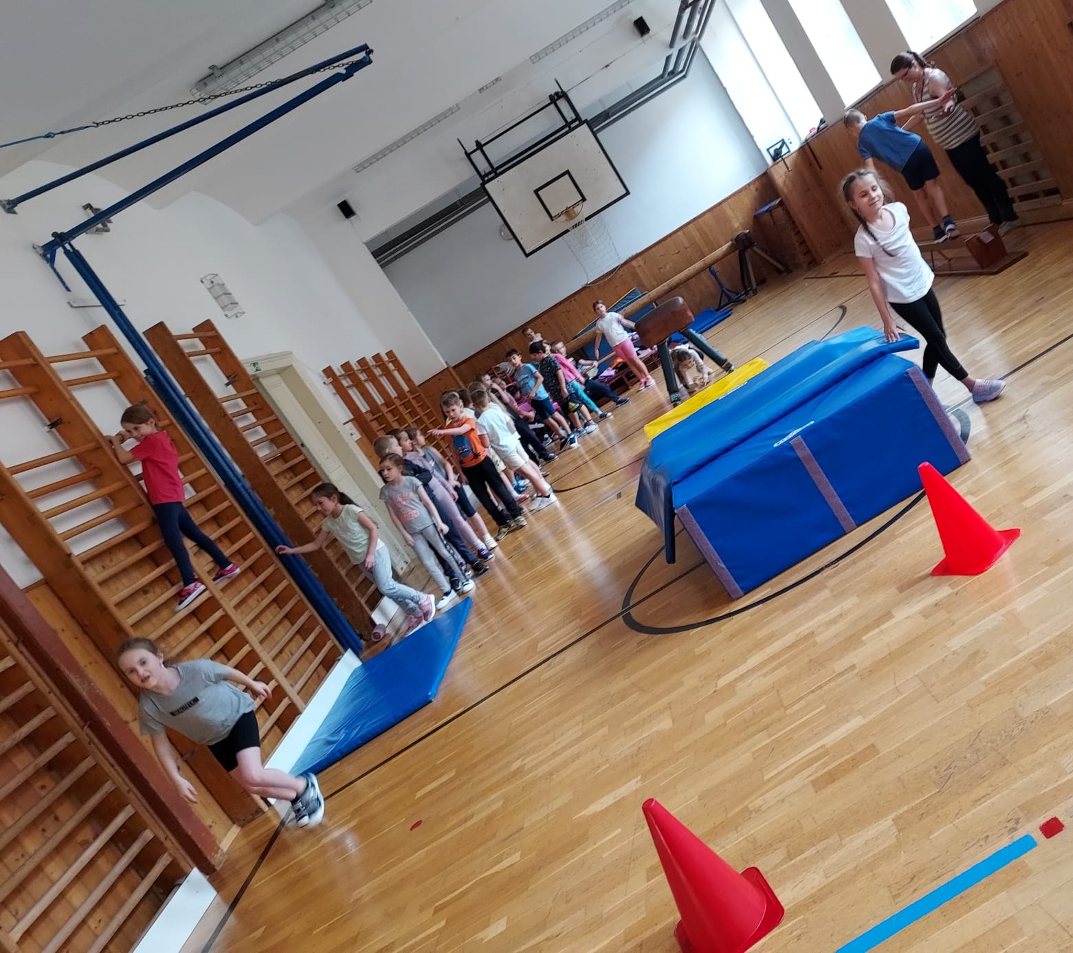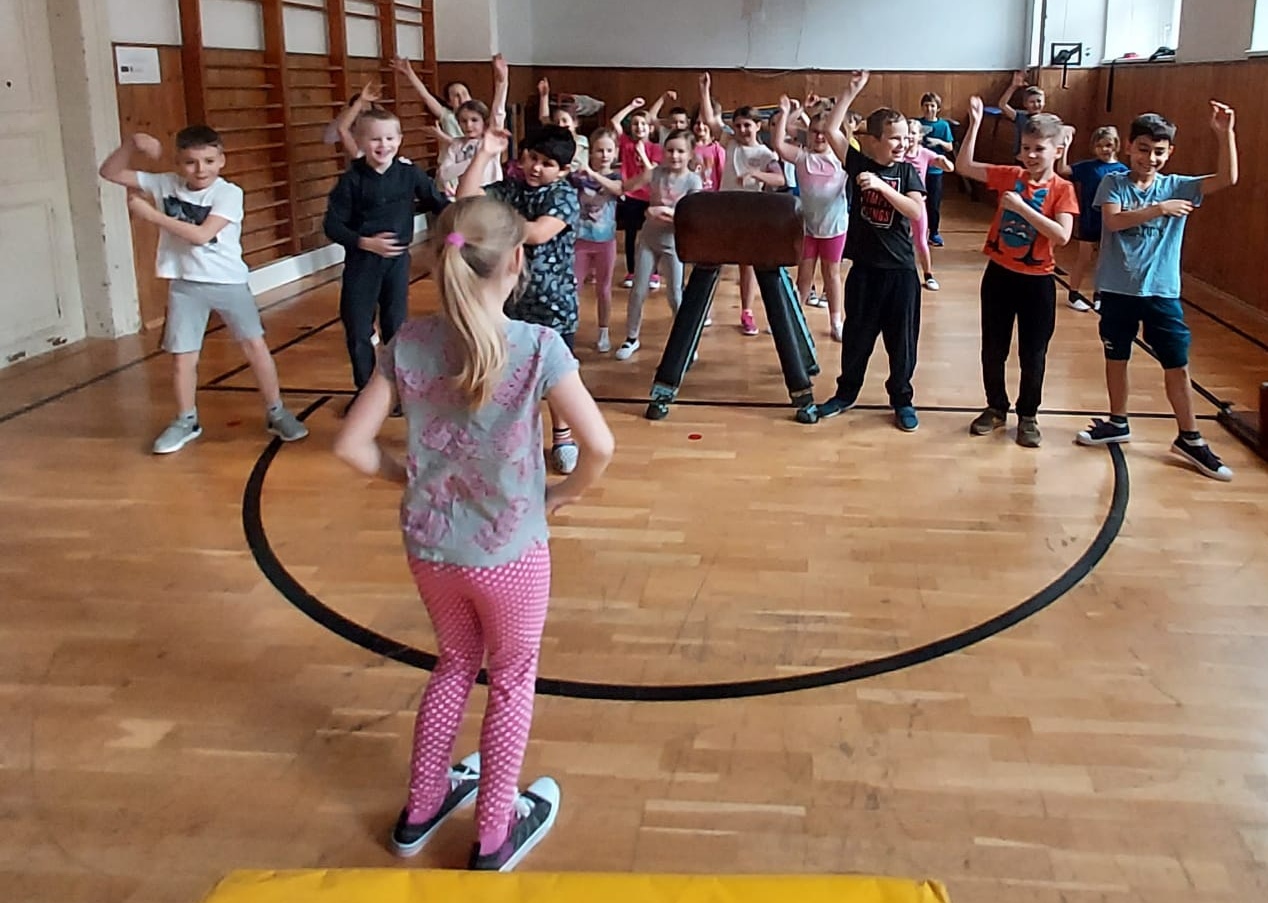 Poslední hodinou tandemového dne je tělocvik, do kterého se samozřejmě snažíme zakomponovat téma. Opičí den je v tělocviku poměrně snadná záležitost, že😊. Opičí dráha, opičení se a nakonec písnička ,,Co vidí opička" od Míši Růžičkové.