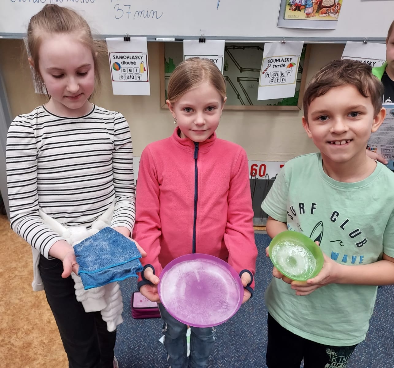 Hospodáři se totiž v noci před svatým Matějem pouštěli do zajímavého meteorologického experimentu. Dali ven mokrou utěrku a čekali, co se stane. Pokud utěrka zmrzla na kost, dala se očekávat ještě zima. Pokud však zůstala mokrá, zajásali a očekávali brzký nástup jara. My jsme k pokusu využili technickou vymoženost mrazák a měřili jsme čas, za jak dlouho zmrzne mokrá utěrka a voda v misce. Nutno dodat, že zmrzlá utěrka vyvolala všeobecný úžas a pod zkoumajícími ručičkami opět rychle roztála do své původní podoby.