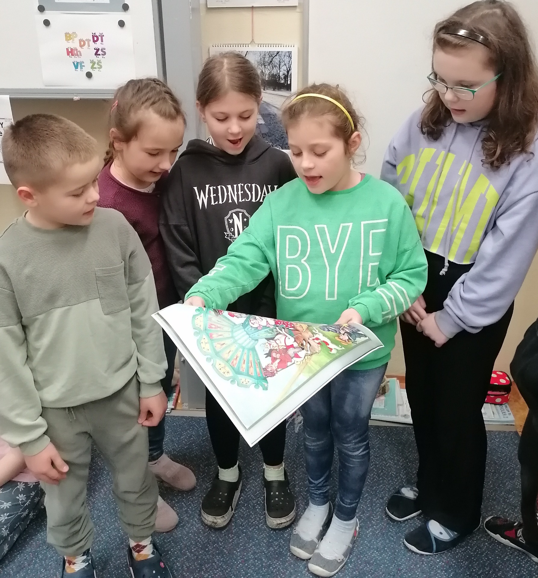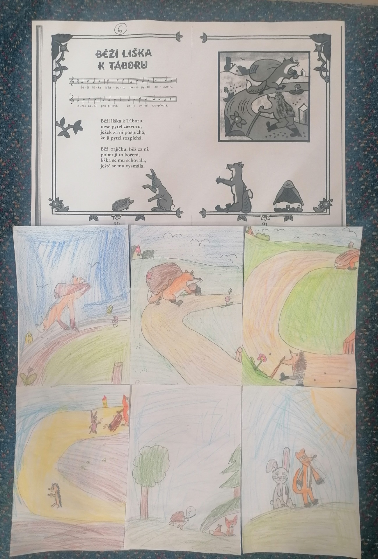 V dobách, kdy chyběl bulvár, se dařilo kramářské a pouťové písni. Proto se na poutích lidé mohli dozvědět pikantní příběhy zblízka i zdaleka. My jsme se do světa celebrit nepouštěli a pro jistotu jsme zvolili osvědčené téma lidových písniček a děti ve skupinkách rozkreslily písničky do příběhů a la komiks. A každá skupinku písničku pěkně kramářsky předvedla a zazpívala. Jaro je zas o krůček blíž.