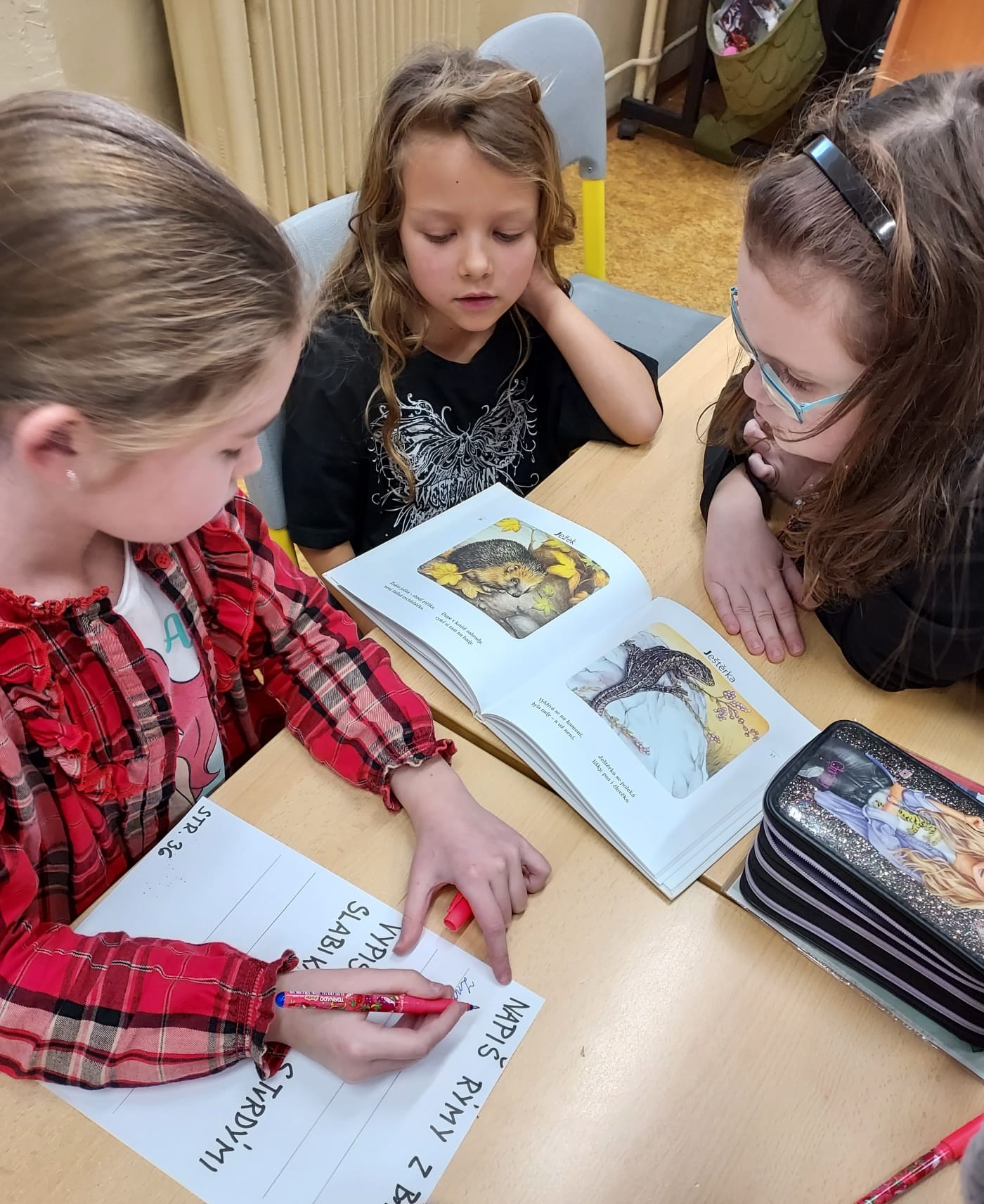 Poté přišlo na řadu skupinové samostudium, otázky, hledání informací, čtení, porozumění textu…..Obě máme rády přírodu, takže studijního materiálu ( tedy knih o přírodě) máme opravdu dost. Světové dny jakéhokoli zvířátka se proto slaví poměrně snadno. Jsou dny, kdy vymýšlení aktivit a úkolů je nepoměrně tvrdším oříškem :-).