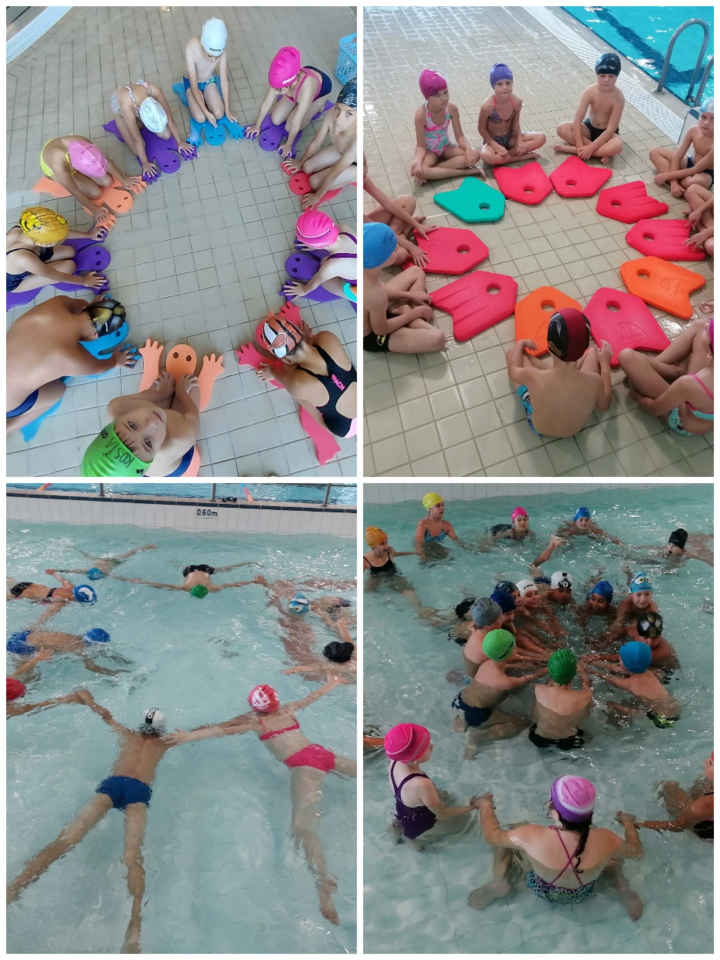 Děti tvořily mandaly samy ze sebe, s využitím plaveckých pomůcek, ve vodě