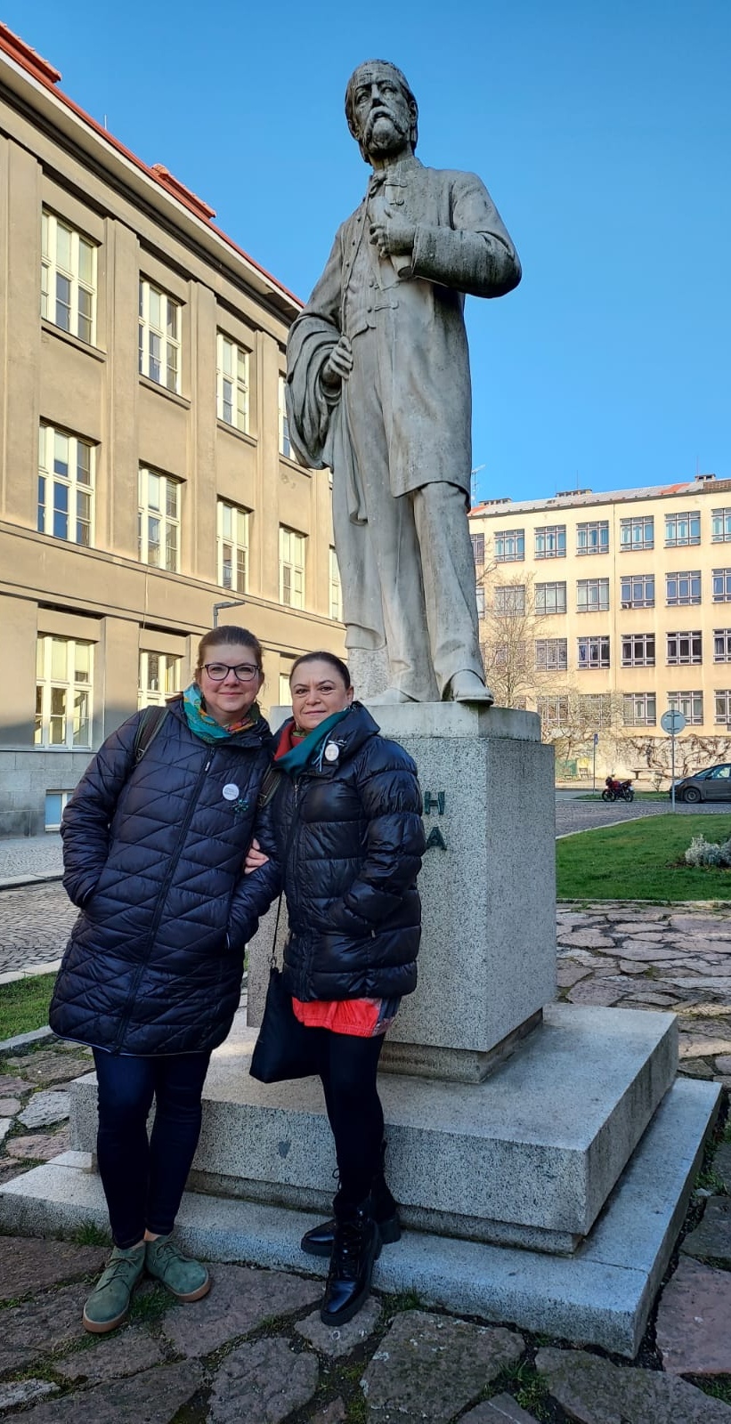 Den s Bedřichem Smetanou jsme začali společnou vycházkou k jeho soše. Je fajn, když máte pomůcky přímo ve městě. Ještě u sochy jsme si poslechli Tábor (mobil + repráček).